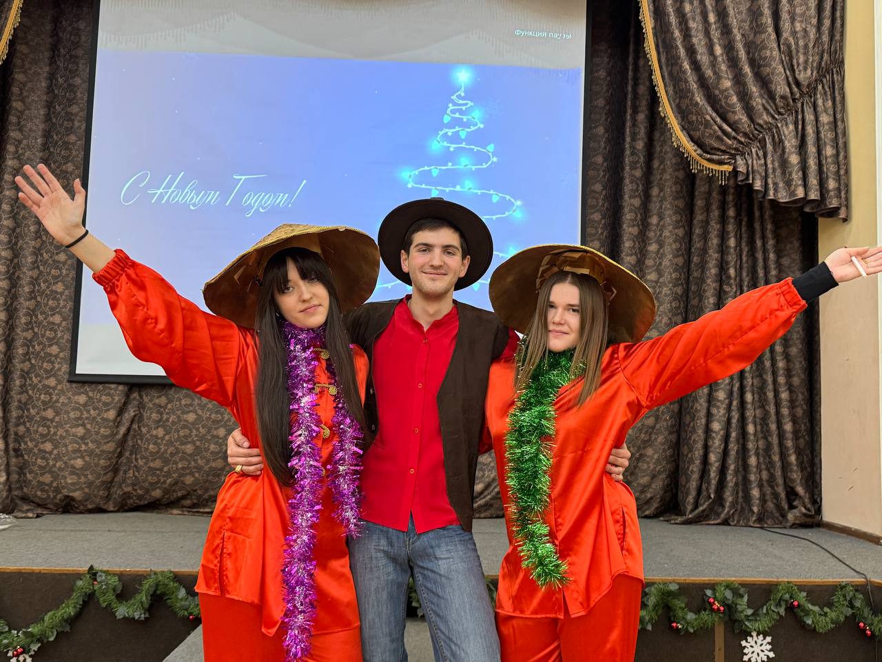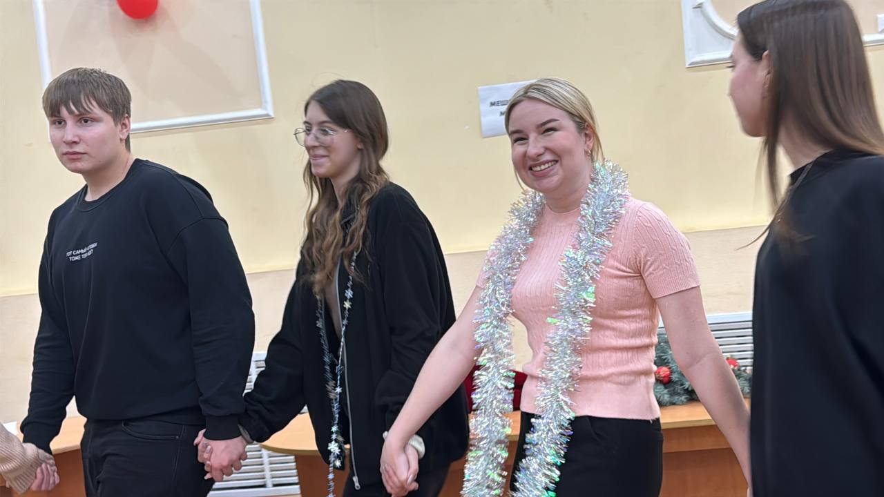 Праздничную программу открыли Дед Мороз и Снегурочка в сопровождении сказочных персонажей. Они поздравили присутствующих с наступающим праздником и пригласили принять участие в увлекательном новогоднем чемпионате. В ходе мероприятия студенты активно взаимодействовали на тематических станциях, демонстрируя смекалку, эрудицию, творческие и спортивные навыки. Участники проявляли свои музыкальные способности, вспоминали любимые советские фильмы и песни, а также угадывали новогодние блюда.