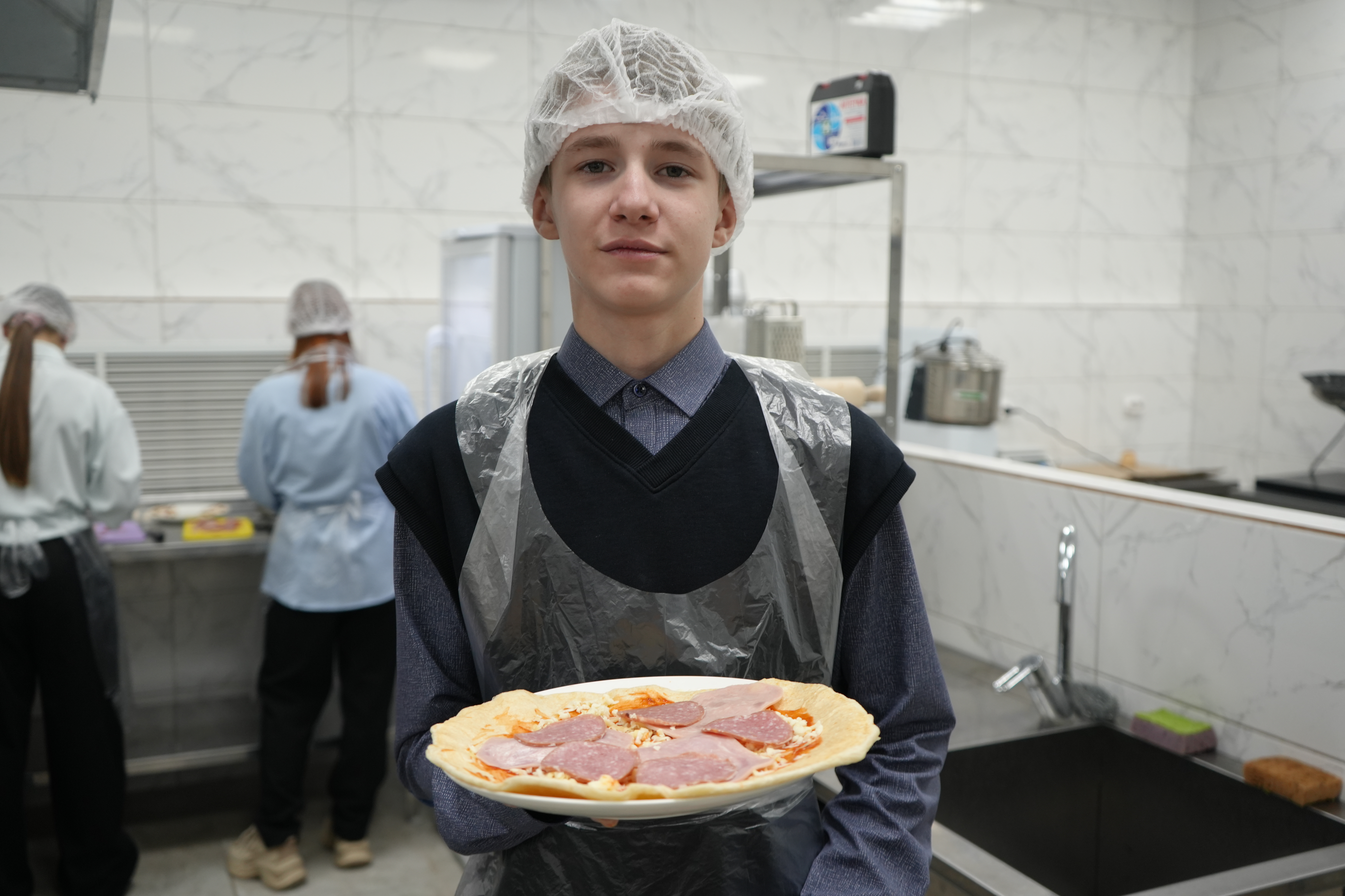 Учащиеся школы познакомились с профессией повар. Для них была проведена экскурсия по учебной кухне ресторана, где они познакомились с современным оборудованием. Также узнали о рецепте приготовления теста для итальянской пиццы, соуса «Неополетано» и ингридиентах, входящих в состав блюда.