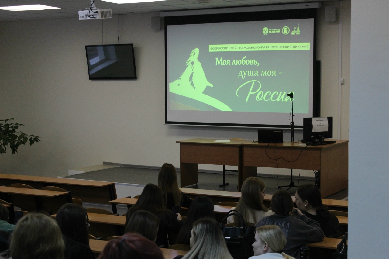 18 ноября студенты группы 2 пед «Б», под руководством преподавателя И.В. Ждановой, приняли участие во Всероссийском гражданско-патриотическом диктанте «Душа моя, любовь моя — Россия». Мероприятие проходило в очном формате на площадке Точки кипения КГУ и было организовано Российской академией народного хозяйства и государственной службы при Президенте Российской Федерации. Этот проект существует с 2019 года и уже собрал более 2,7 миллиона участников по всей стране.